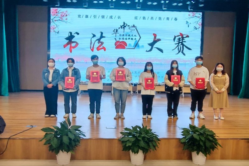 本网讯 汉字和以汉字为载体的中国书法是中华民族的文化瑰宝,是人类文明的宝贵财富。为弘扬国粹,提升校园文化氛围、提高同学们的审美素质,由共青团安徽信息工程学院委员会主办,电气与电子工程学院团总支、书法协会承办的“党旗引领成长,红色点亮青春”书法大赛,于5月3日晚上在A32大学生活动中心举行。校团委副书记随小莉,管理工程学院团总支书记李玉,通识教育与外国语学院途遥,计算机软件工程与大数据人工智能学院薛梦婷,电气与电子工程学院副院长陈振、团总支书记吴猛、学工秘书曹栋、王欣桐,书法协会黄世彤出席本次书法大赛,经过初赛,共五十余组选手进入决赛。